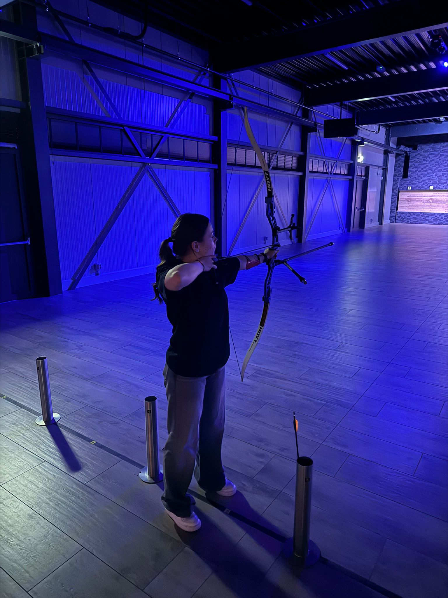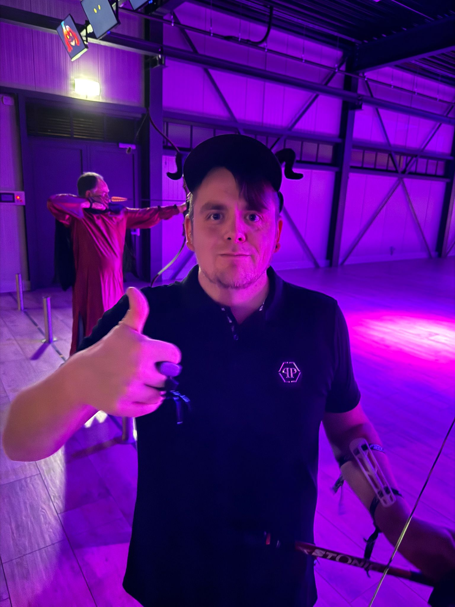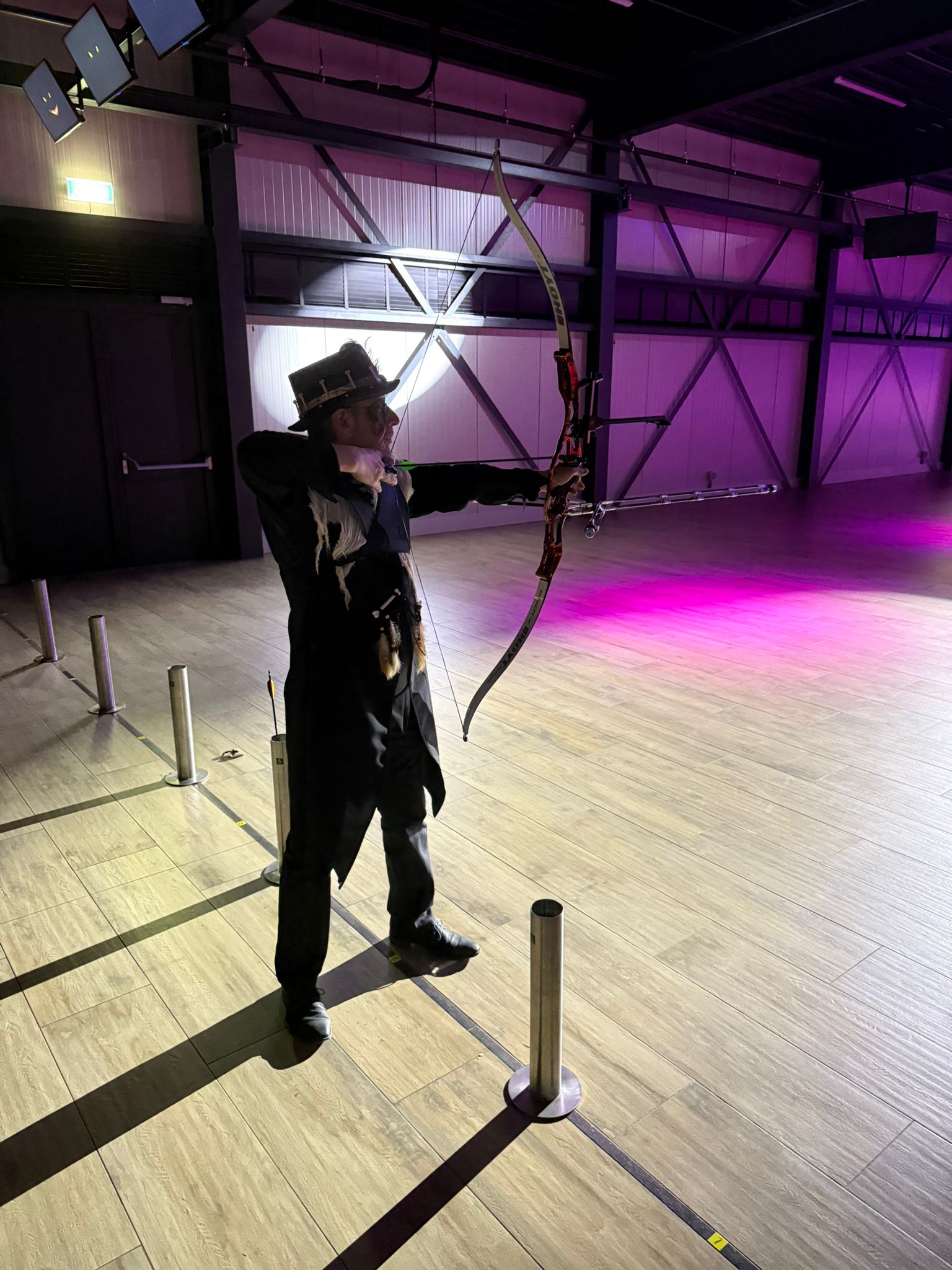 Het was zaak voor onze schutters om zoveel mogelijk punten bij elkaar te schieten op de speciale “haunted house”-blazoenen. En dat bleek nog niet zo gemakkelijk te zijn, want natuurlijk vindt een Halloween wedstrijd niet plaats met de lampen aan… speciaal voor deze avond was er een lichtshow geprogrammeerd waarbij de blazoenen niet altijd goed zichtbaar waren. Een leuke en tikkeltje frustrerende uitdaging, waarbij niet iedereen zijn hoofd koel wist te houden en punten te schieten 😉.